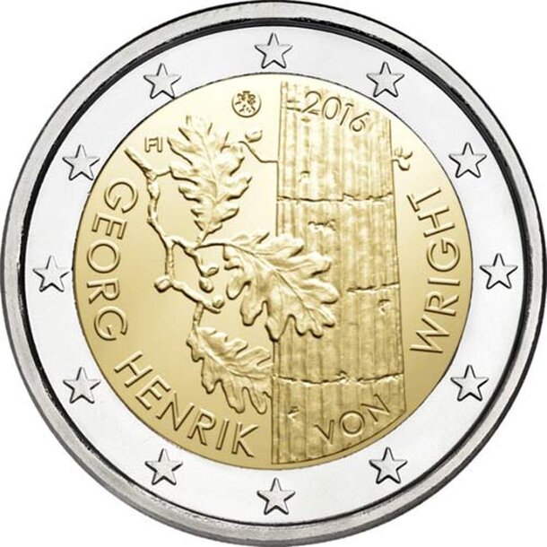 Pamětní bimetalová mince Finska 2016, nominální hodnoty 2 EURO, "100. výročí narození filozofa Georga Henrika von Wrighta".