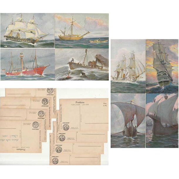 Lot 8 ks pohlednic Lodě, neprošly poštou, čisté - německé vydání
